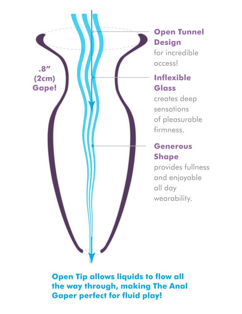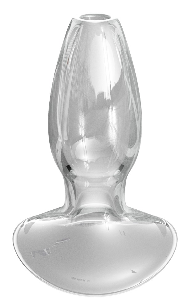The tunnel wants to be filled…!Hollow butt plug with a stopper that prevents the plug from slipping in too far. Perfect for refreshing enemas and games with a mini vibrator. Exclusive, transparent design made out of borosilicate glass. Holds up to 29.5 ml.Complete length 9.6 cm, width 6.4 cm, inner Ø 2 cm. Borosilicate glass.