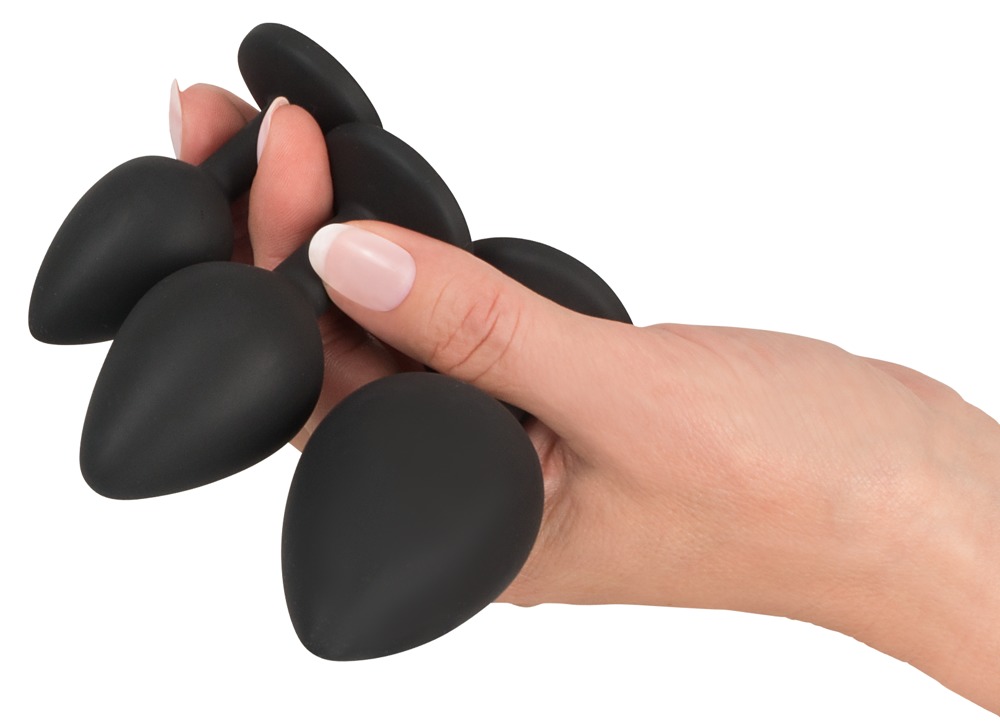 Douche and plug trio for anal pleasure! 4 high-quality toys in a box: 1 x anal douche for, preparation, cleaning and wonderful squirting feelings. 16.6 cm large, insertion length 5.5 cm, tube Ø 0.7 to 0.9 cm, liquid capacity 224 ml.3 x butt plugs in different sizes for stretching and training. Each plug has a gem on the stopper which is perfect for decorating the back door. Size: Small plug: complete length 7 cm, insertion length 6 cm, Ø max. 2.7 cm, weight 25 g.Medium plug: complete length 8 cm, insertion length 7 cm, Ø max. 3.5 cm, weighs 44 g.Large plug: complete length 9.5 cm, insertion length 8.5 cm, Ø max. 4.2 cm, weighs 75 g.Silicone, PU, ABS, acrylic.