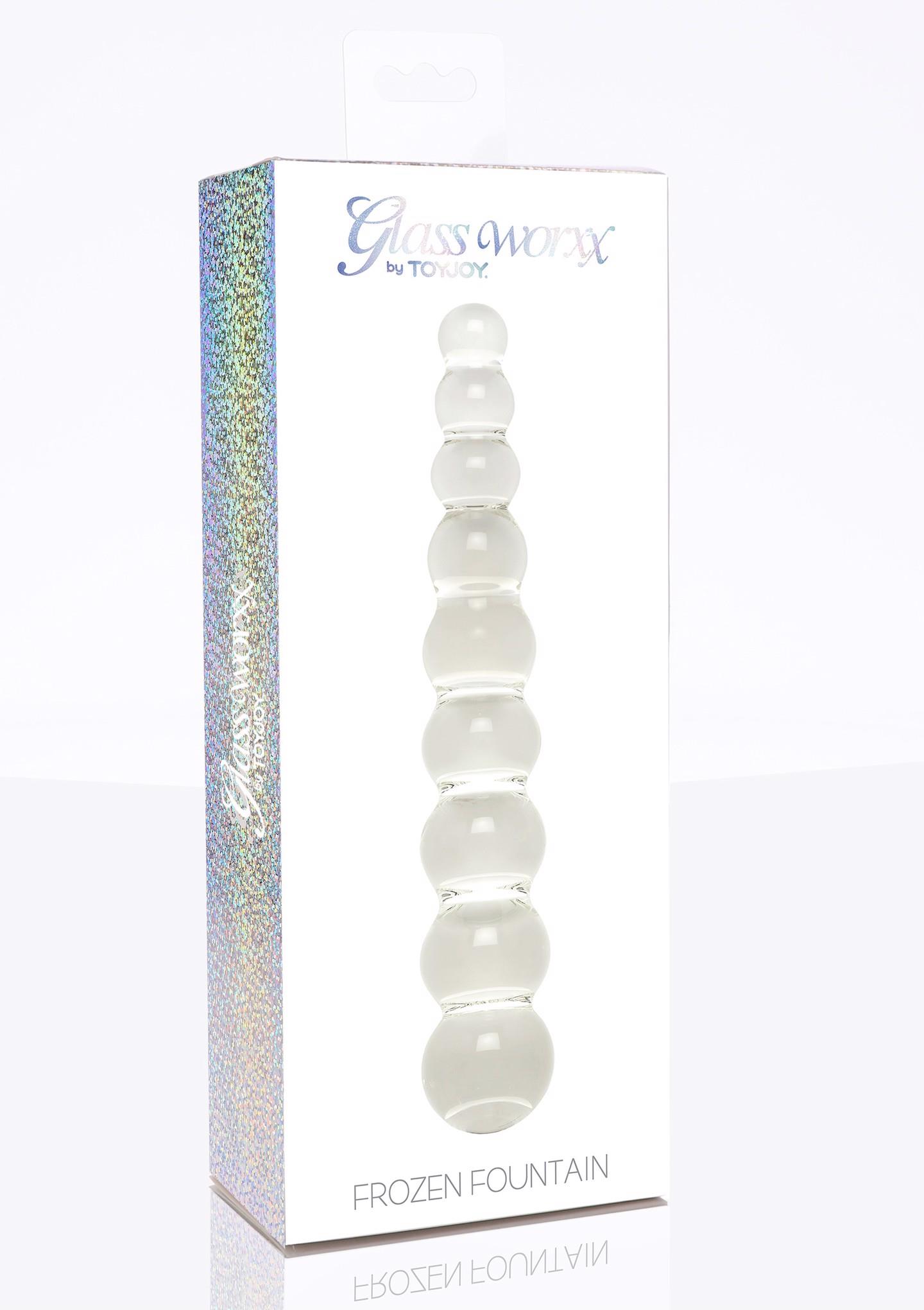 The Frozen Fountain by TOYJOY GLASS WORXX is a sleek dildo with sexy curves. The silhouette gradually increased in circumference towards the base, allowing you to slowly ease your way towards pure ecstasy, one thrilling bump at a time! Smooth, stylish, and classy: TOYJOY GLASS WORXX is a luxurious, hypoallergenic choice in intimate pleasure. This elegant collection of glass toys is sensually sculpted for your ultimate satisfaction. These highly-durable sex toys are made of first-class, non-porous glass that feels deliciously smooth to the touch, and offer many body-safe play options. Heat the glass under a warm water tap for warm, seductive indulgence. Or cool the glass with cold water for a tantalizing chilly touch that will make your toes curl with delight. TOYJOY GLASS WORXX is a prime choice for all your erotic fantasies, providing pure bliss, sculpted in the finest glass silhouettes. Now in a new packaging.
