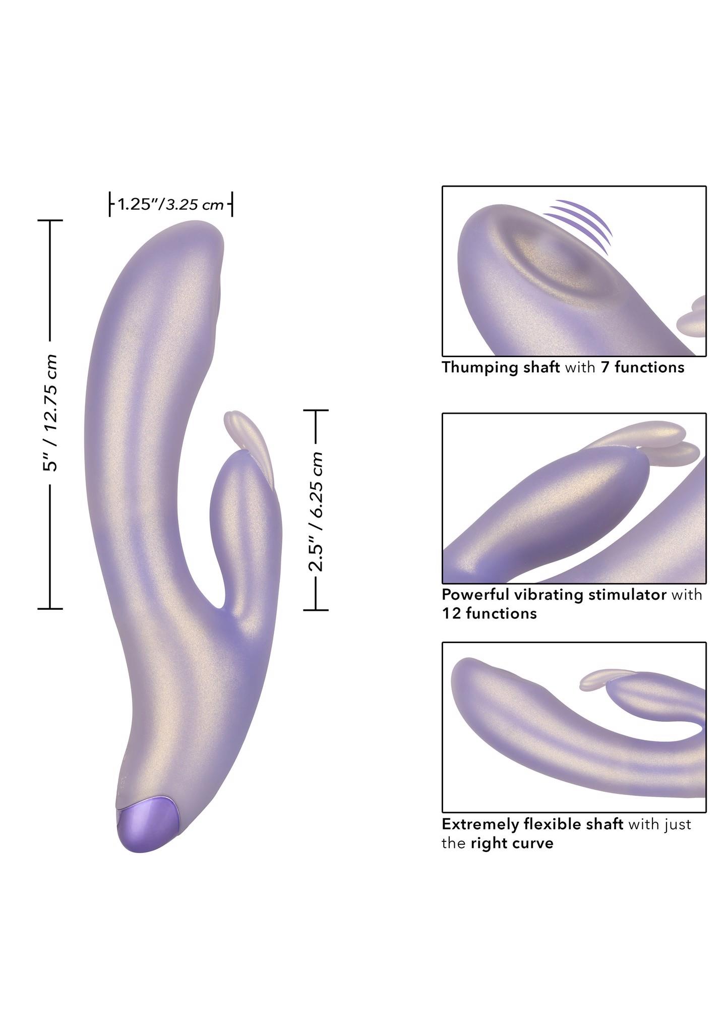 The gorgeous G-Love G-Bunny is a dual stimulating massager with vibrating shaft and thumping pulsation stimulator. Love yourself just right with the flexible G shaft, 7 independent functions of thumping action and 12 independent functions of vibrations. The sensually curved thumping shaft and flickering rabbit stimulator are perfect for teasing internal and external sweet spots. For an ultra smooth surface and flexible body, the flickering stimulator and massager are covered in a shimmering SiliconeThis silky smooth vibrator is packed with 12 functions of vibration and 7 independent functions of thumping stimulation made just for you. The high tech memory chip remembers just how you like it resumes play on the last function used. Whether you’re taking a dip with a lover or indulging in a steamy solo session, look forward to up to 1 hour of waterproof vibration. Recharge pleasure and get back to playtime in only 2 hours with the provided USB cable. The flexible massager is made from a hygienically superior silicone. This body safe material is unscented and phthalate free to keep your most sensitive spots happy and healthy.