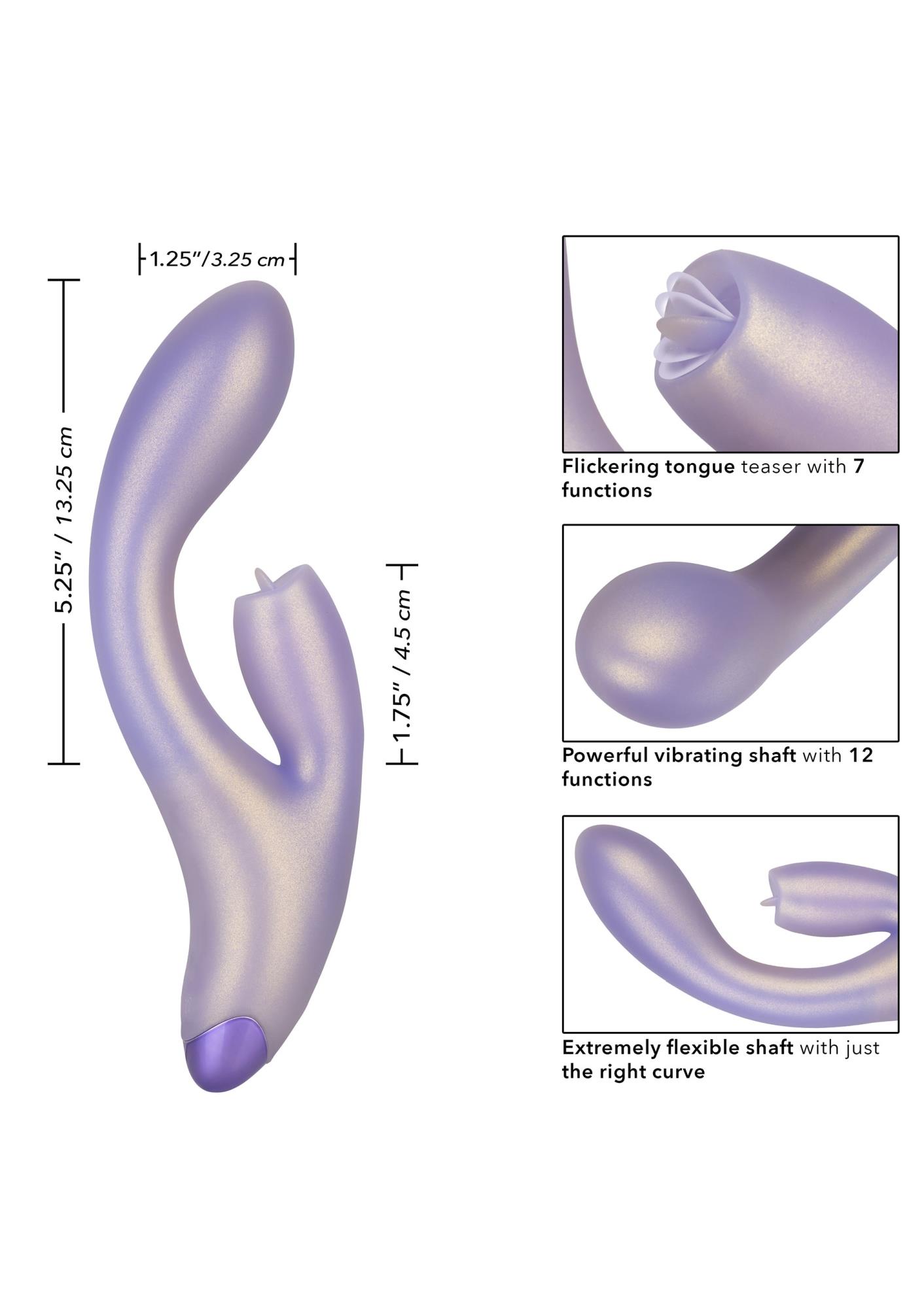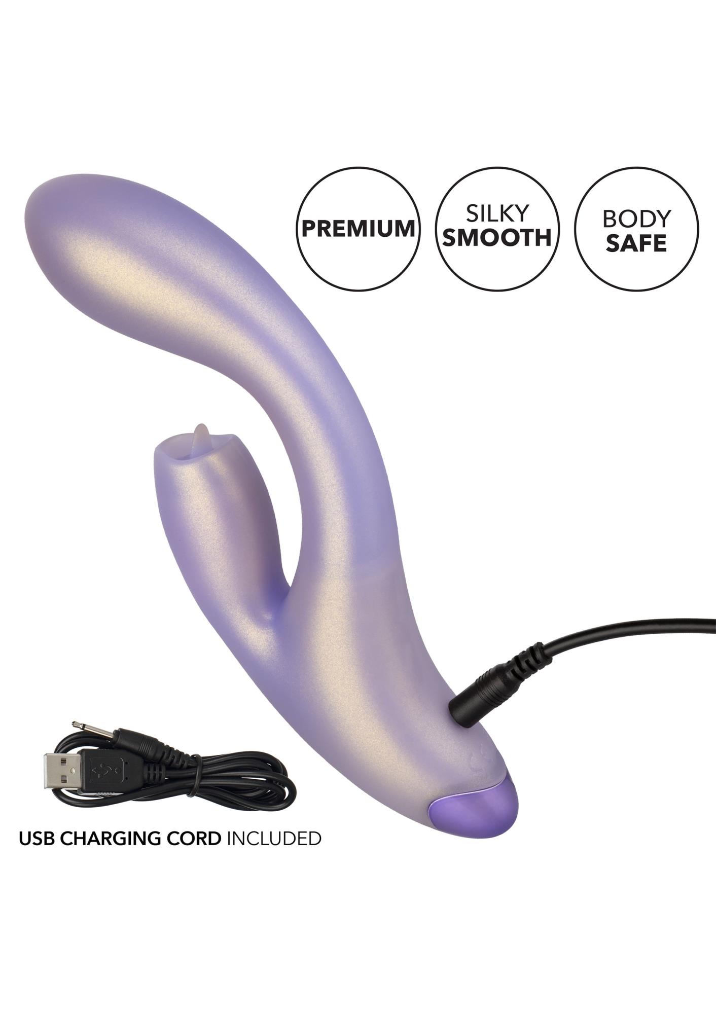 Wspaniały G-Love™ G-Kiss to podwójny stymulujący masażer z wibrującym trzonem i migoczącym językiem przypominającym teaser. Pokochaj siebie w sam raz z elastycznym wałkiem G, 7 niezależnymi funkcjami migotania i 12 niezależnymi funkcjami wibracji. Migocząca końcówka teaser i zmysłowo zakrzywiony trzon są idealne do drażnienia wewnętrznych i zewnętrznych słodkich punktów. Aby uzyskać wyjątkowo gładką powierzchnię i elastyczne ciało, zakrzywiony stymulator i masażer są pokryte połyskującym silikonem. Ten jedwabiście gładki wibrator jest wyposażony w 12 funkcji wibracji i 7 niezależnych funkcji stymulacji migotaniem, stworzonych specjalnie dla Ciebie. Łatwe w obsłudze przyciski sterujące pozwalają bez wysiłku przeglądać każdą funkcję wibracji, jednocześnie zwiększając lub zmniejszając intensywność funkcji. Niezależnie od tego, czy kąpiesz się z kochankiem, czy oddajesz się gorącej sesji solo, możesz spodziewać się nawet 55 minut wodoodpornych wibracji. Naładuj przyjemność i wróć do gry w zaledwie 2 godziny za pomocą dostarczonego kabla USB. Elastyczny masażer wykonany jest z higienicznie najwyższej jakości silikonu. Ten bezpieczny dla ciała materiał jest bezzapachowy i wolny od ftalanów, aby Twoje najbardziej wrażliwe miejsca były szczęśliwe i zdrowe.