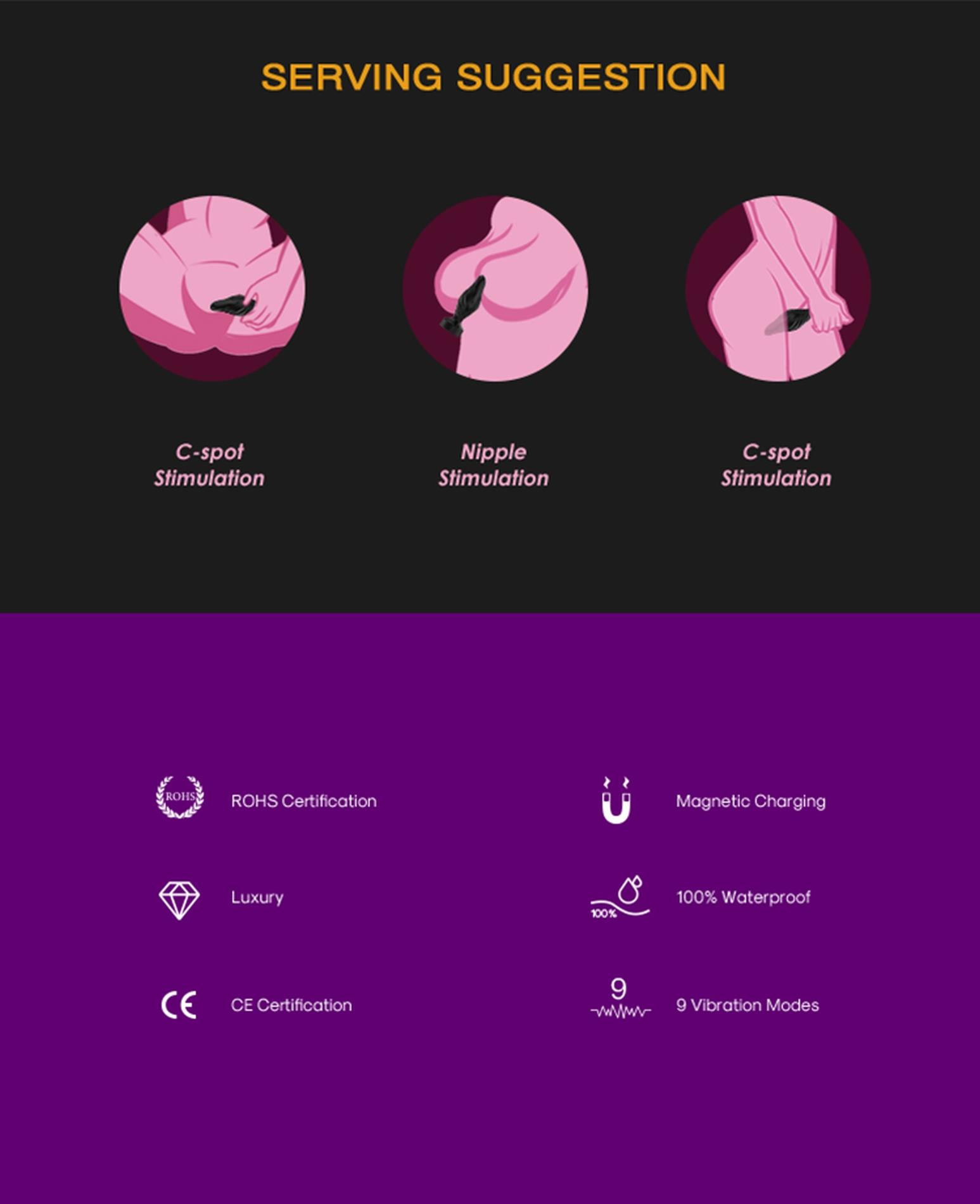 Ten korek analny wyposażony jest w 9 potężnych trybów wibracji, kóre są łatwo kontrolowane za pomocą dołączonego pilota. Zabawą można cieszyć się samemu lub w parze, ponieważ korek ma bardzo elastyczną podstawę, która sprzyja łatwemu wkładaniu, a także zapobiega nadmiernej penetracji. Ekscytujące gry z partnerem są możliwe po oddaniu kontroli nad pilotem. Wodoodporny dla gorącej zabawy w wannie i pod prysznicem.