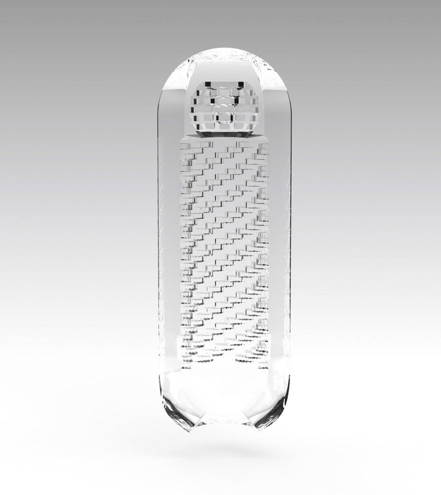 Przezroczysty, wielokrotnego użytku masturbator spinner marki Tenga z wbudowaną cewką, która sprawia, że masturbator obraca się podczas penetracji (mechanizm wewnętrznej cewki).