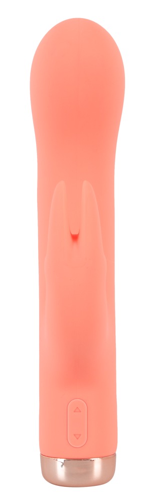 A small, powerful vibrator for on the go!Beautiful, pastel-coloured Mini Rabbit Vibrator from peachy! with a perfectly curved design, a plump massage head and a rabbit-shaped clitoral stimulator. It stimulates vagina, G-spot and clitoris at the same time. The 10 vibration modes provide diverse pleasure and can be adjusted up and down at the push of a button. The high-quality silicone with Soft Touch texture feels great against the skin during pleasure and play. Rechargeable – includes a USB cable.Complete length 16.7 cm, insertion length 9.5 cm, Ø 2.8 cm – 3.3 cm. Weight 129 g. Silicone, PU, ABS.