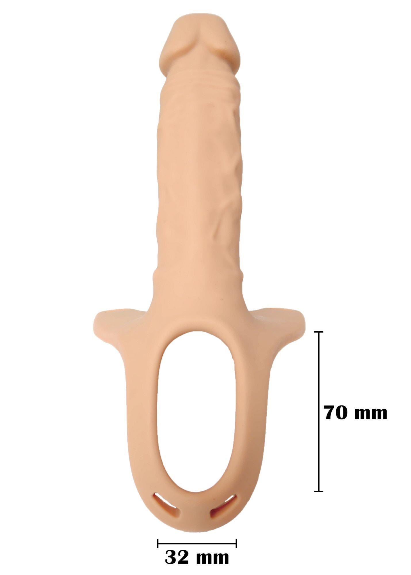 Doskonała silikonowa nakładka na penisa z pierścieniem na jądra.
