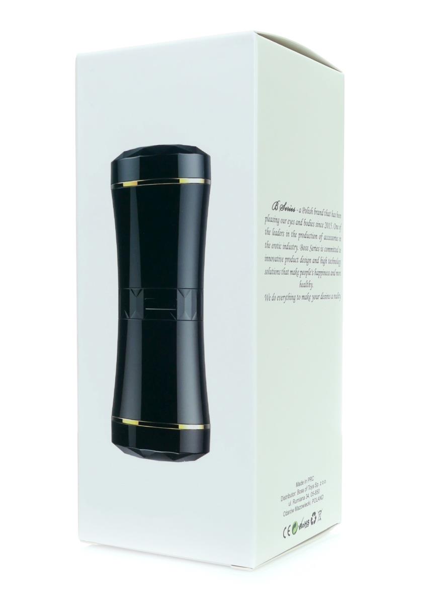 - Dwustronny masturbator dla Panów z jednej strony posiada WAGINĘ o pięknie wyprofilowanych miękkich wargach. Z drugiej strony DOUBLE STORM BLACK jest wyposażony w USTA.