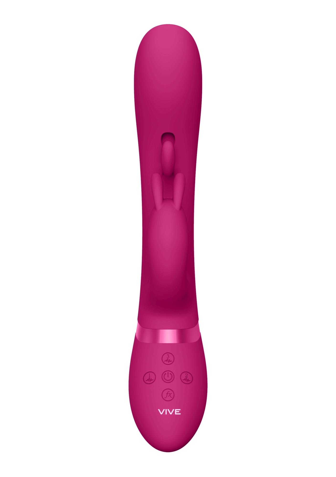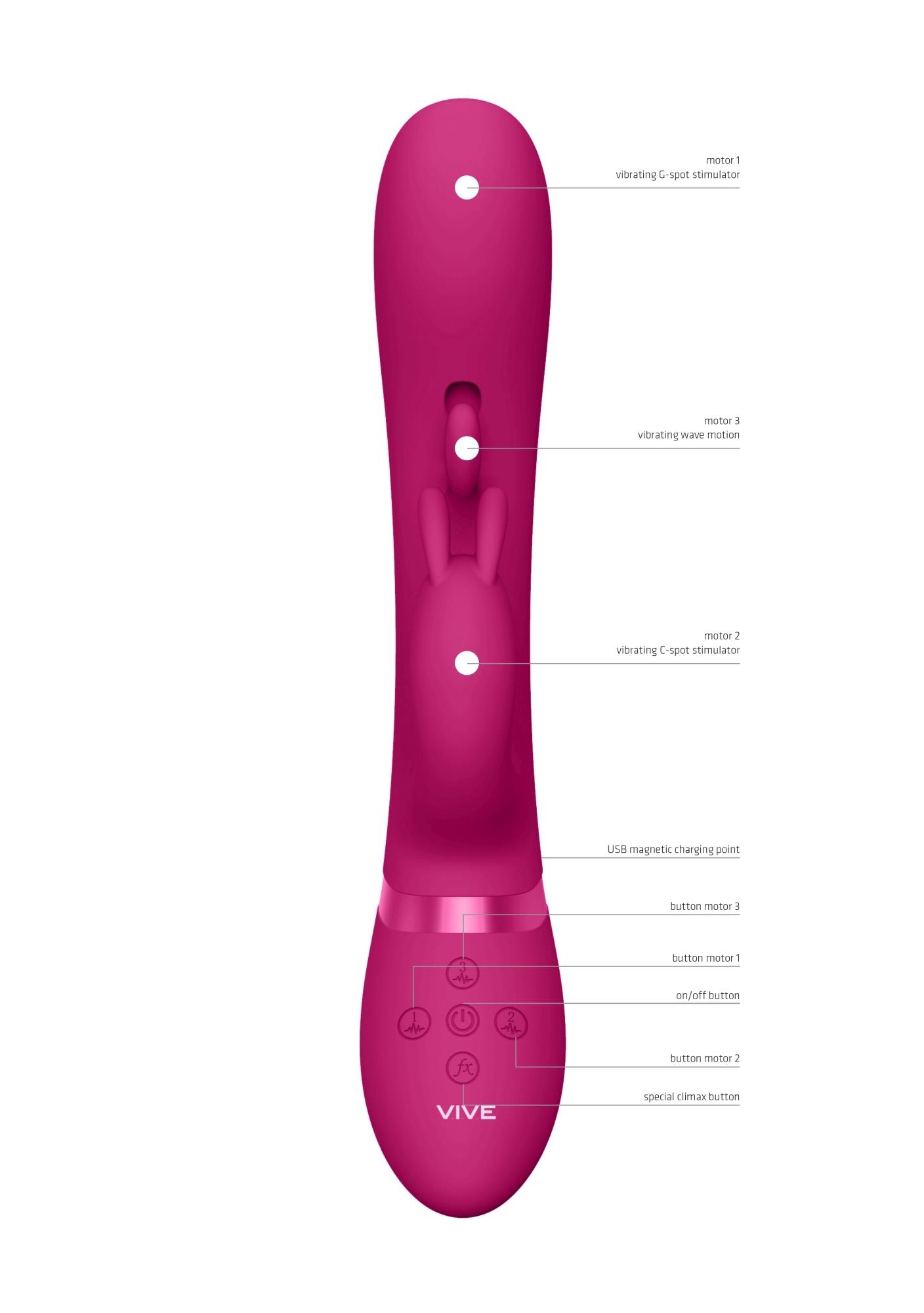 TAMA trafia we wszystkie właściwe miejsca. Wykorzystuje trzy 10-funkcyjne silniki nowej generacji F1 oraz zaawansowaną technologię (wszystkimi trzema silnikami można sterować niezależnie od siebie): jeden innowacyjny 10-funkcyjny wibrujący silnik NG F1 do stymulacji punktu G, jeden 10-funkcyjny wibrujący silnik NG F1 do stymulacji łechtaczki oraz jeden 10-funkcyjny silnik NG F1 w trzonie wibratora zapewniający falujące ruchy. Dzięki temu możesz mieć pewność, że wszystkie Twoje erogenne strefy dostaną poziom rozkoszy na jaką zasługują. Oznacza to też, że możesz korzystać z aż 1000 różnych kombinacji ustawień. Zabawkę wykonano w 100% z gładkiego silikonu medycznego (który jest zarazem hipoalergiczny), jest całkowicie wodoodporna (IPX7) i niesamowicie cicha (poniżej 60 dB). Tym samym możesz jej używać, gdy tylko przyjdzie ci na to ochota! Wibrator wyposażono w akumulator litowo-jonowy ładowany z użyciem magnetycznego kabla USB. Po całkowitym naładowaniu kablem USB zabawka zapewnia 40 minut niezapomnianych zabaw. Po prostu podłącz, naładuj i baw się w najlepsze! A gdy już będziesz blisko, za jednym dotknięciem przycisku z funkcją szczytowania natychmiastowo nastawisz wszystkie silniczki na pełną moc i prędkość i, co najważniejsze, doprowadzisz się do orgazmu, który zwala z nóg. Wszystkie wibratory VIVE mają roczną gwarancję, by chronić twoją inwestycję Wymiary opakowanie 10,20 x 7,70 x 24,20 cmWaga opakowanie 255 gramWymiary produktu 27,6 cmMasa produktu 175 gramTryby prędkości 10Wiele prędkości TakPoziom głośności 60 dBZ akumulatorem TakCzas ładowania 180 minCzas pracy naładowanej baterii 40 minWodoodporność TakOdporność na zachlapania TakBez ftalanów TakMateriały ABS, Silicone