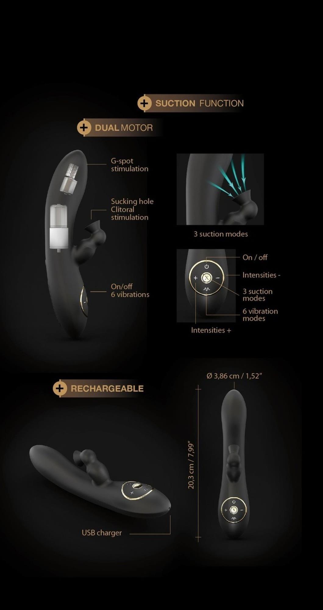 Zakrzywiona końcówka pozwoli precyzyjnie stymulować punkt G, a wystająca część wyposażona została w dziurę zasysającą, która symuluje pieszczoty oralne.